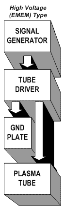 TUBE DRIVER – In the modern design of “high voltage” (low current) systems, there is a certain amount of circuitry required to sense, trigger and “step up” the voltages to an appropriate level to effectively drive the plasma tube. In this environment , that typically does not require a lot of complex circuitry with today’s excellent components. Component selection for this functional area, will dictate the level of drive needed from the Signal Generator.