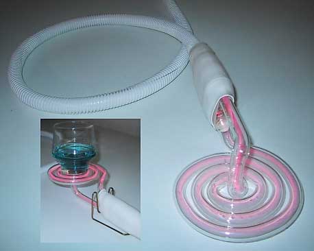 PLASMA TUBE – This is, of course this, the final emitting (and mixing) component is the place that is normally thought of when considering true Rife technology. In the case of the High Voltage, lower power applications, (as compared to Bare-Rife systems), specialty tubes have been designed to provide high performance typically in a more compact size. Special mix gasses, not normally usable in a Bare-Rife environment, allow excellent “excitation” and plasma formation at very reasonable and nominal costs to the users. Because these tubes typically do not have to be wrapped and do not develop the high temperatures as experienced in the RF environments, many unique custom shaped configurations are available. The document on Rife Tubes and Considerations provides many actual examples/photos of the HV tubes. Besides being quite versatile, there may be some other laws of physics that come into significant “play” on some of these special configurations not available in a Bare-Rife system.
