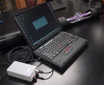 Here is shown, a simple and practical high voltage type configuration using a simple laptop for initial programmable frequency generation (Timo Essers’ RifeGEN), RIFEforLIFE’s SquareGENsp+ Square Wave Processor and Universal Driver, inputting to a simple PMR circuit driven Allred Neon Compact Single Bubble E-Gas tube. In the configuration above, the SquareGENsp+ is taking the software driven sound output and processing the signal to an excellent square waveform. One of the outputs of the SquareGENsp+ is the proper level and impedance match for PMR High voltage type devices.