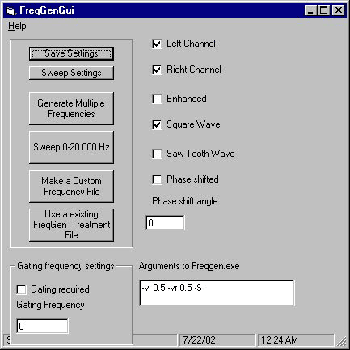 A nice graphical front-end for Fred Walter's dos/command line FreqGEN. This has been tested on Windows98 and may need additional support files available through the author's website. |